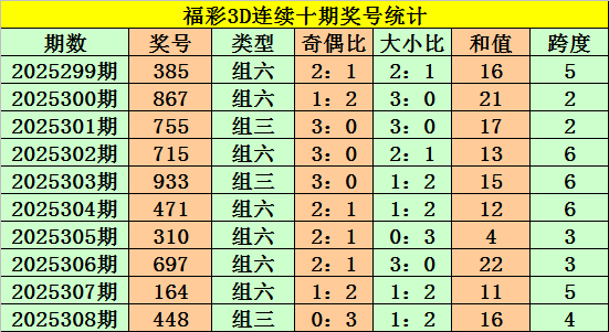 上期回顾:福彩3D第2025308期奖号:448。组三、小小大、偶偶偶。